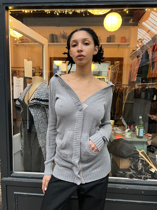 Grey knitted sleeveless hoodie