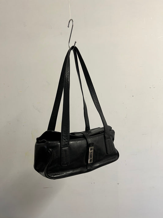 Black baguette with silver buckle
