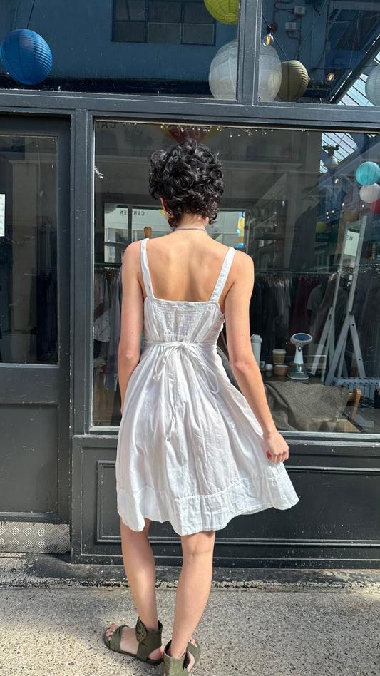 Maxi dress with raw edge appliqué on chest
