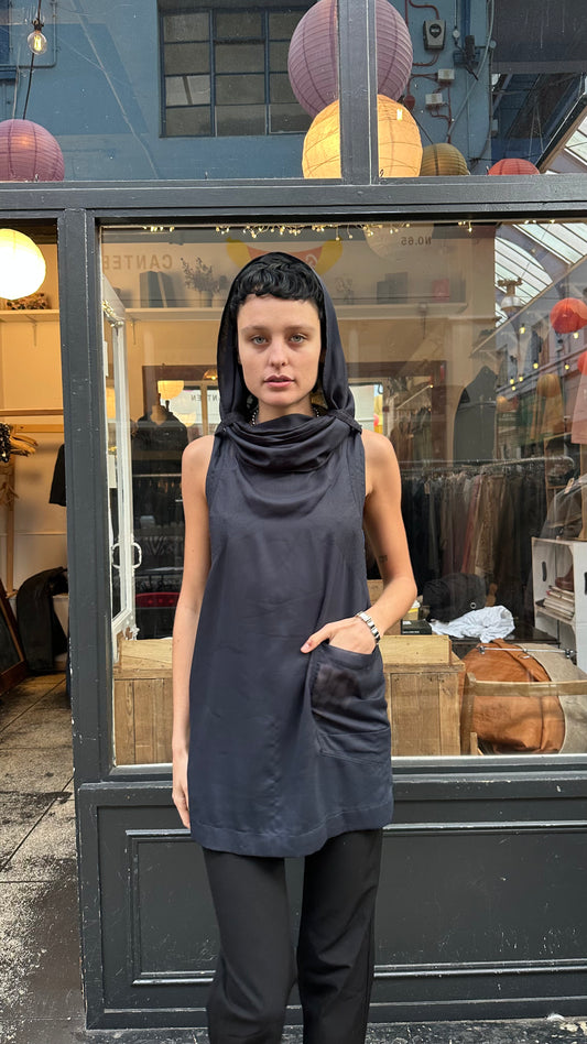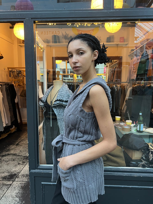 Grey knitted sleeveless hoodie