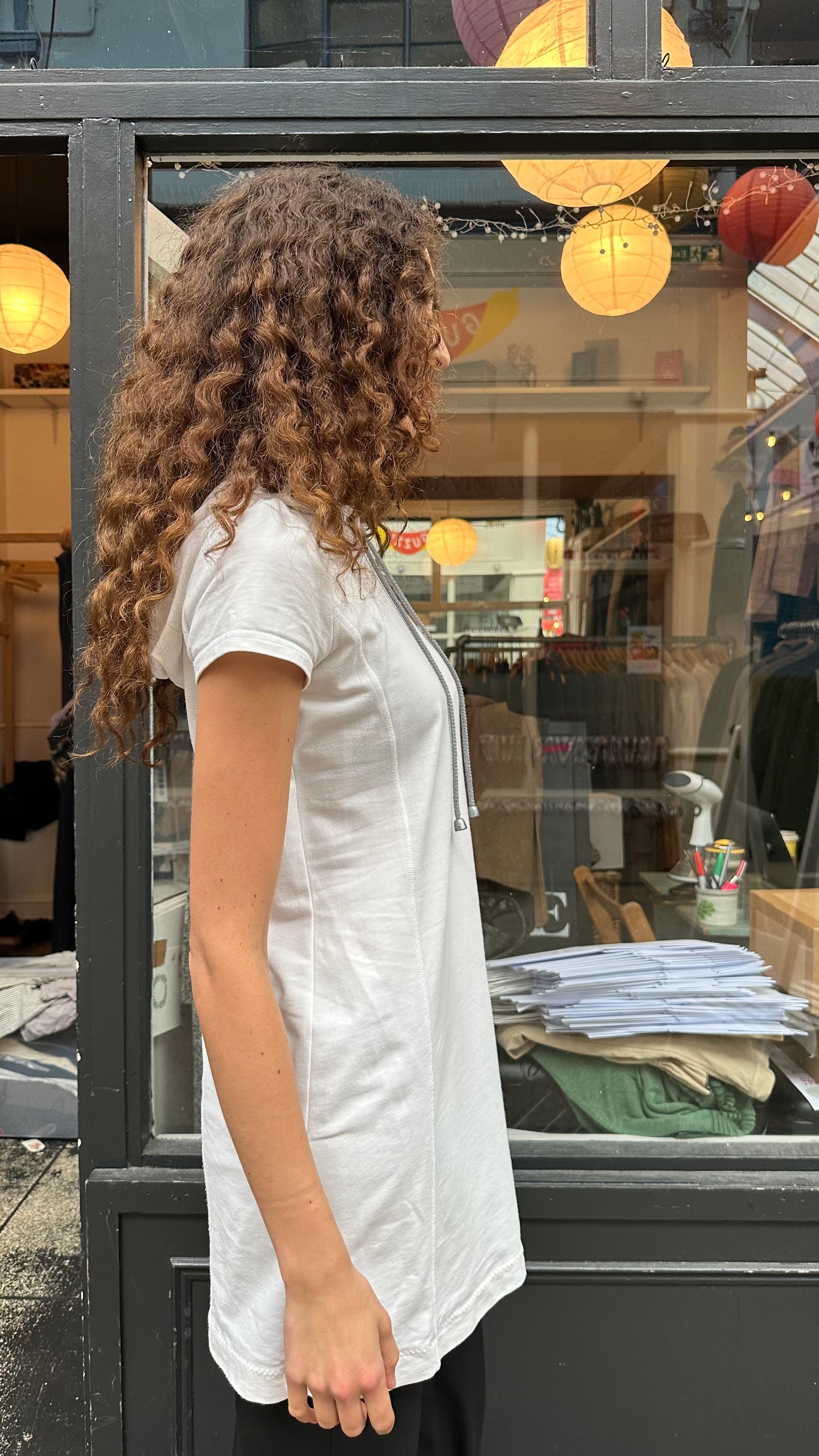 Antoinette is 5,8 and normally wears a size XS.