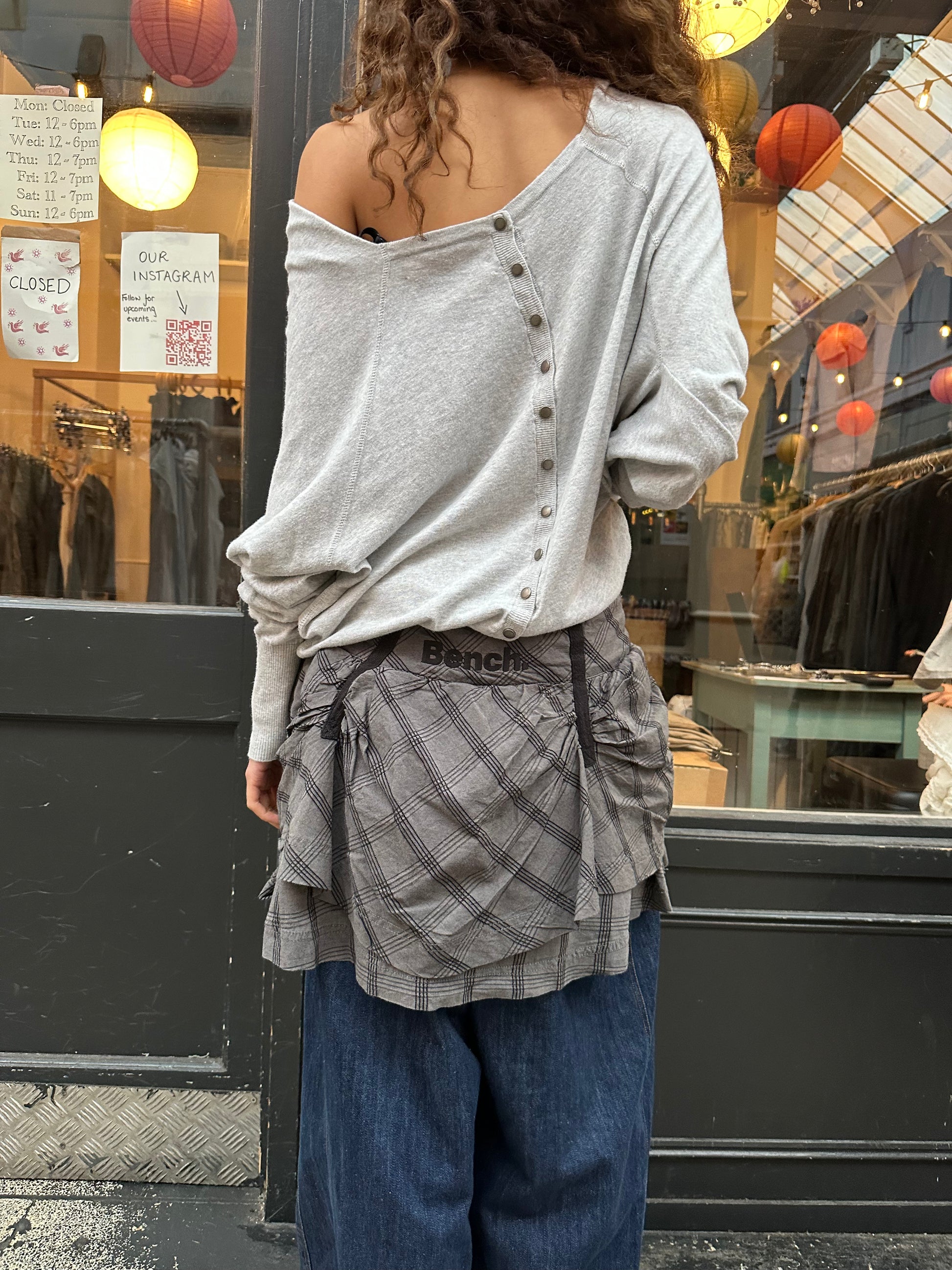 Super cute grey and black checked mini skirt with lovely gathered details by 'Bench.' Very rare item.