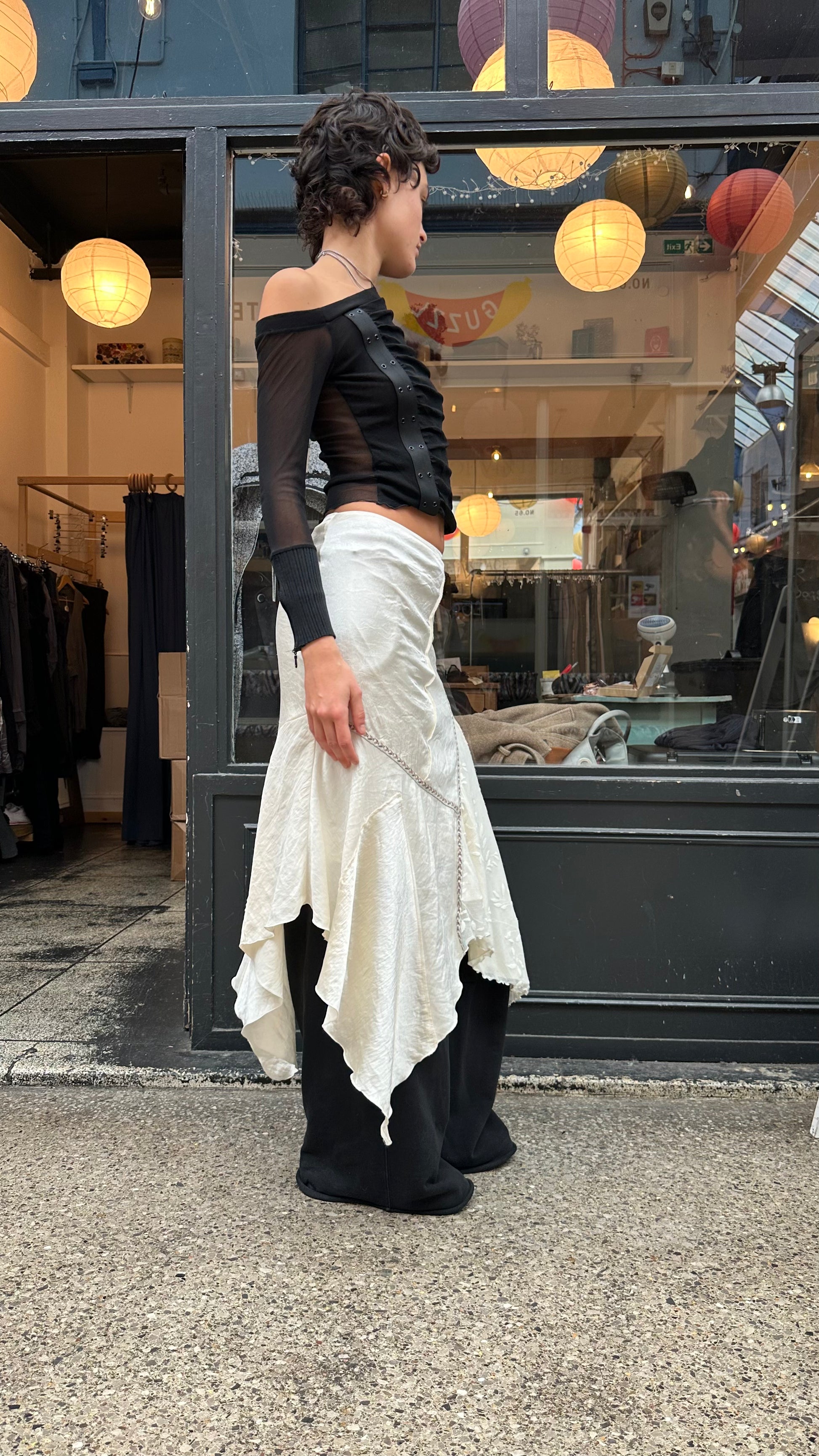 Cream silky skirt with lace panels and ribbon details, so pretty over trousers