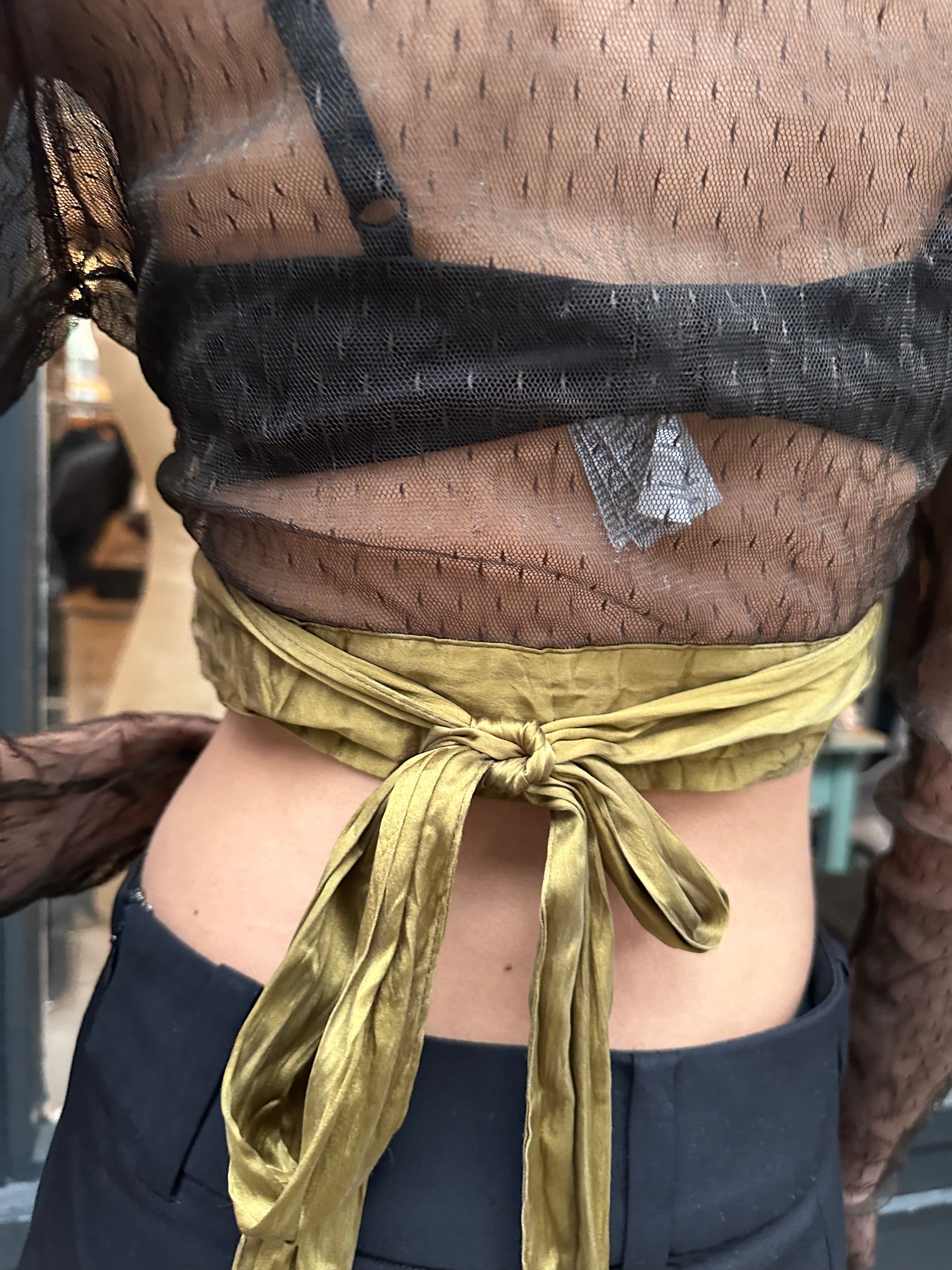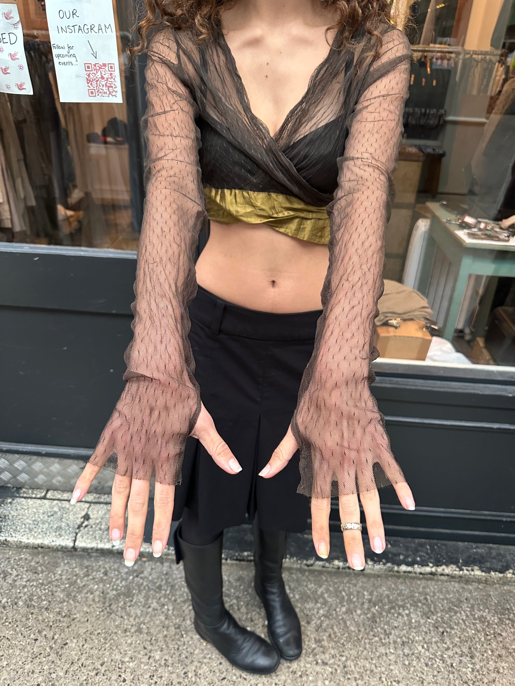Lovely mesh and satin brown, green/gold sheer bolero jacket by one of our favourite French brands.