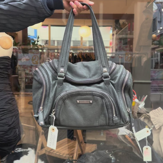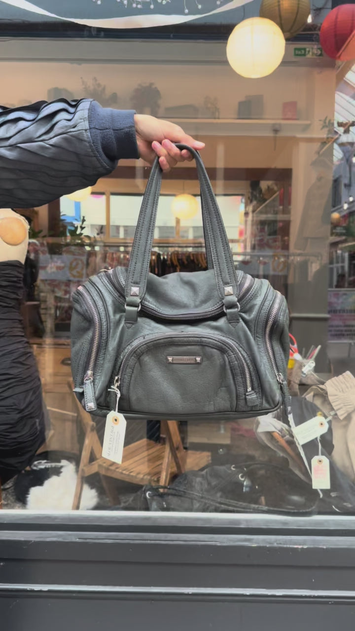 true 90s vintage leather bag with multiple zips in beautiful condition