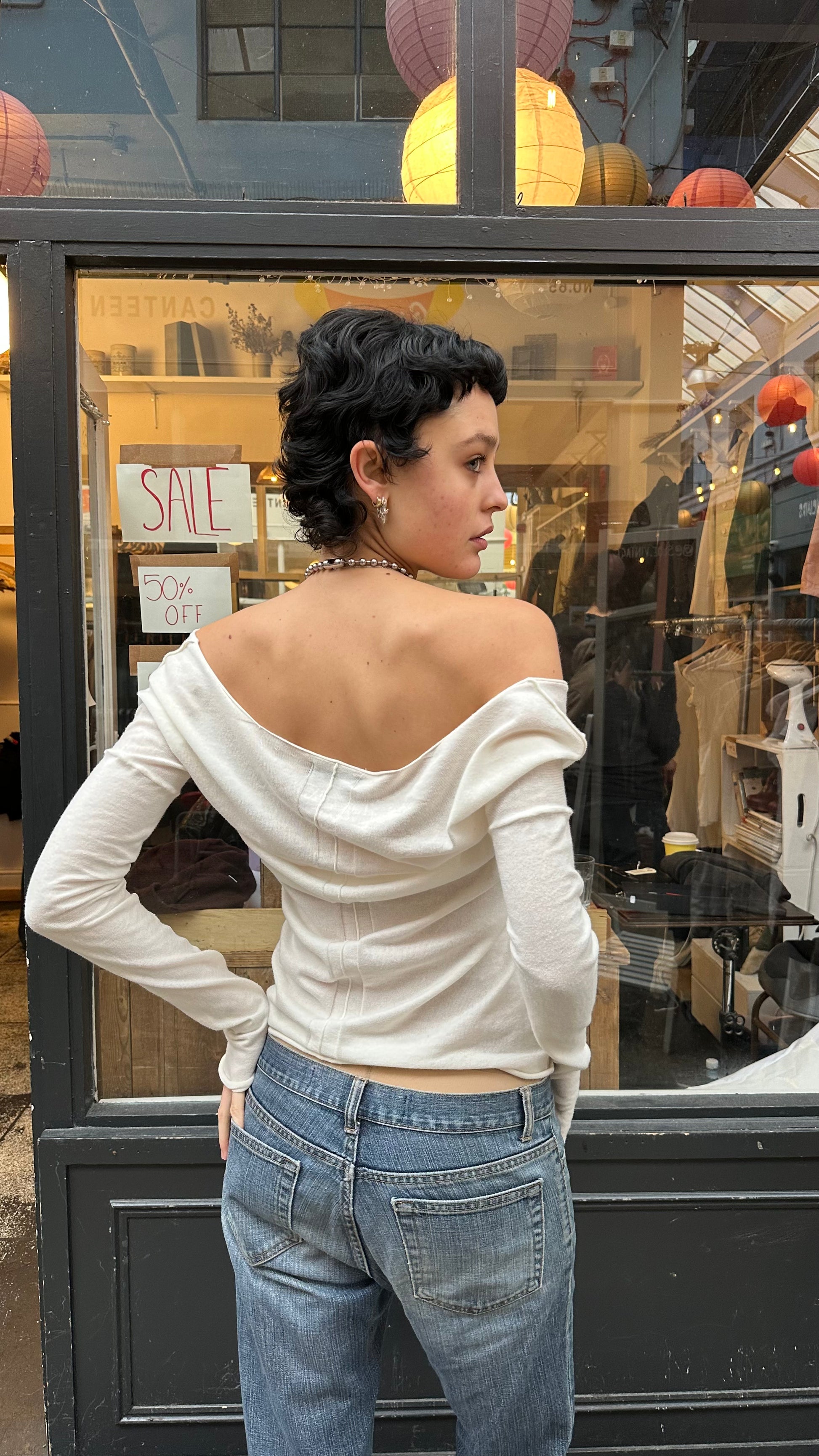beautiful quality cream or white fine knit reversible cardigan