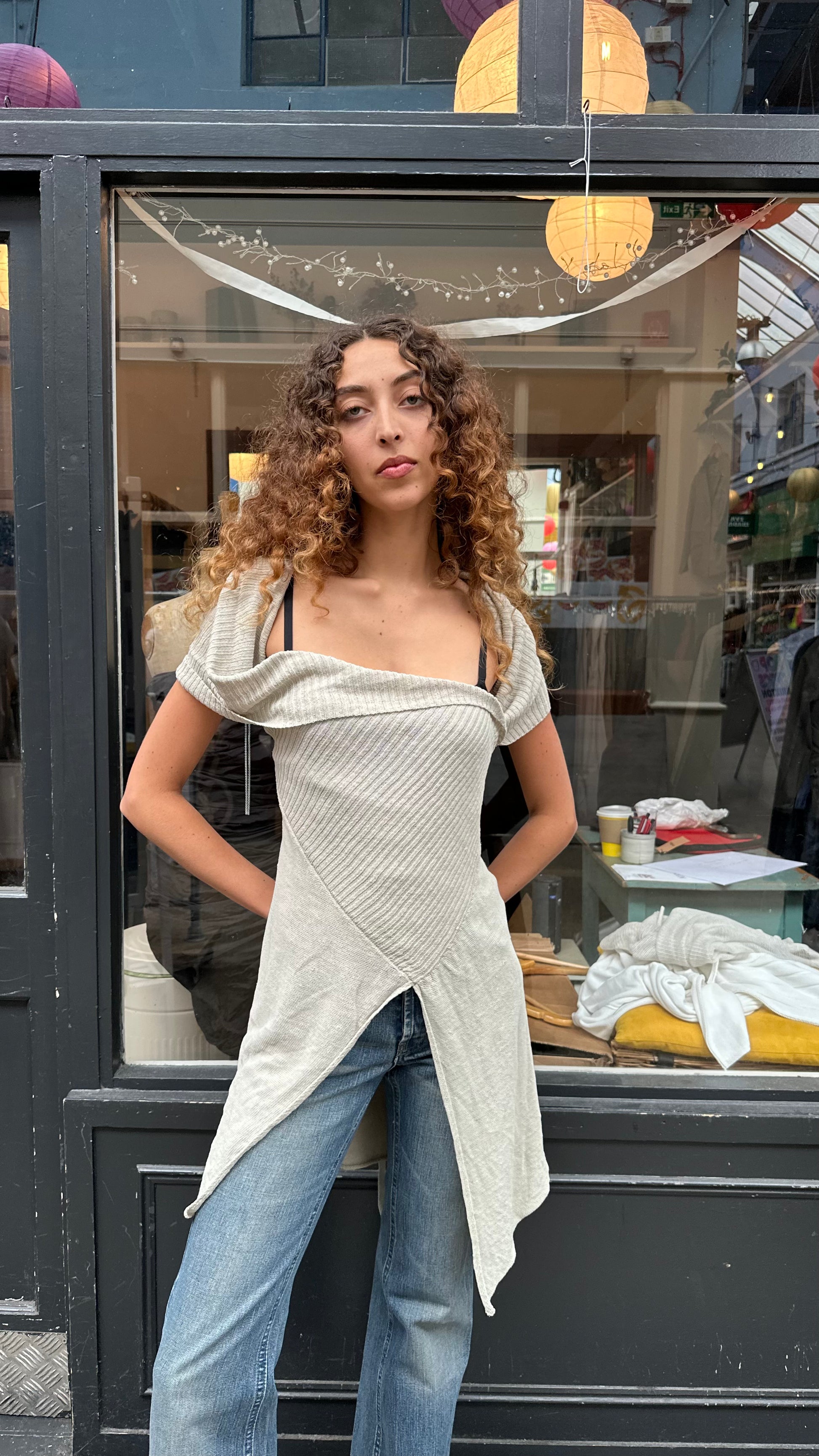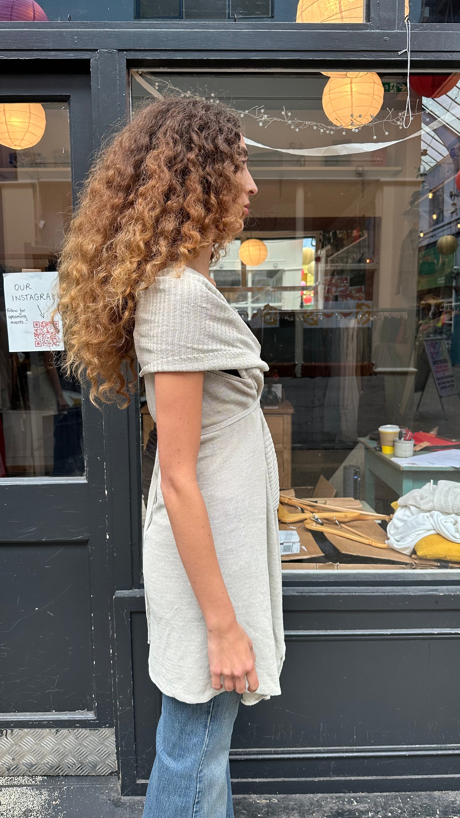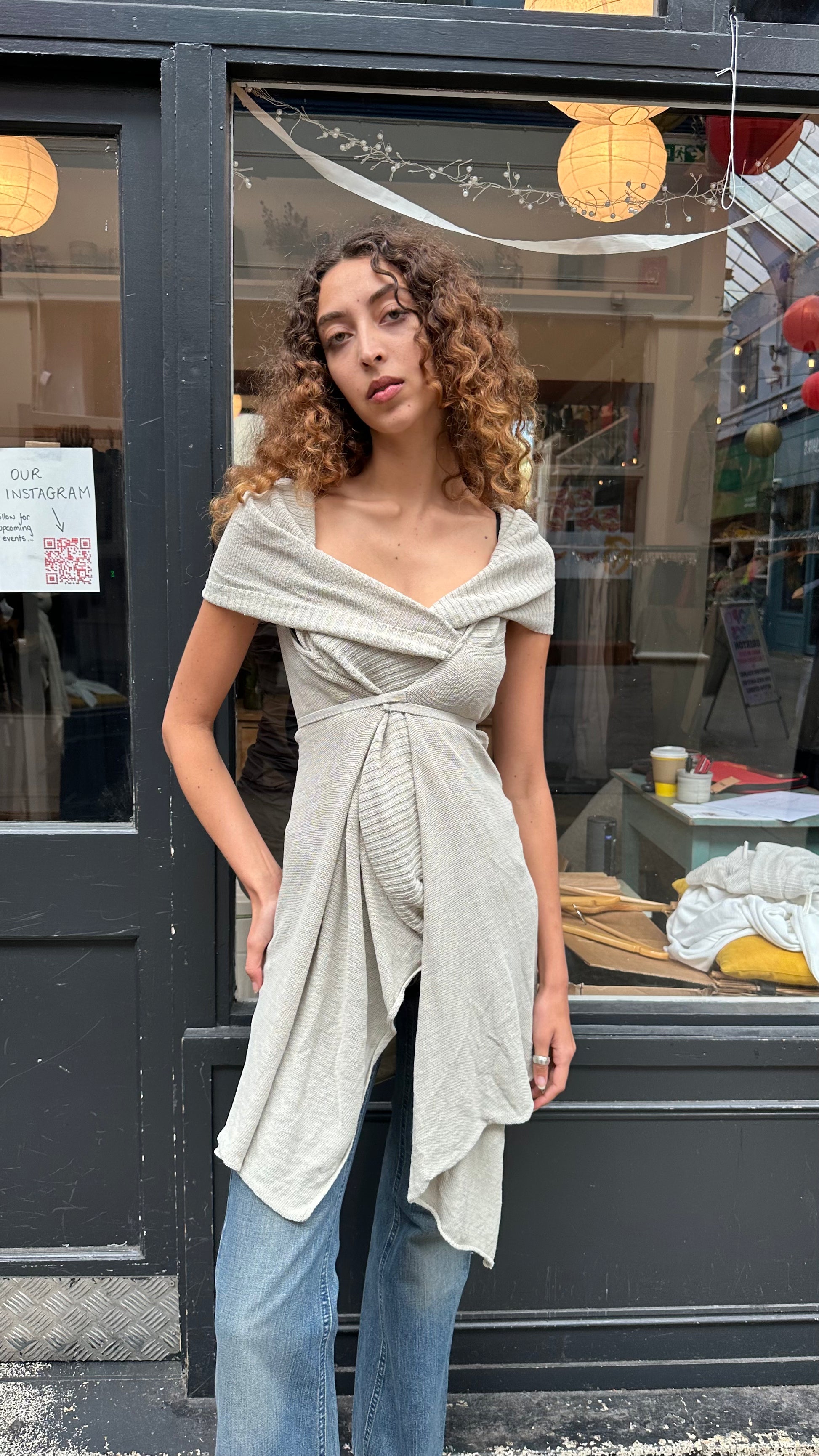 Oatmeal asymmetric wrap cardigan can also be worn reversed, so many amazing styling options