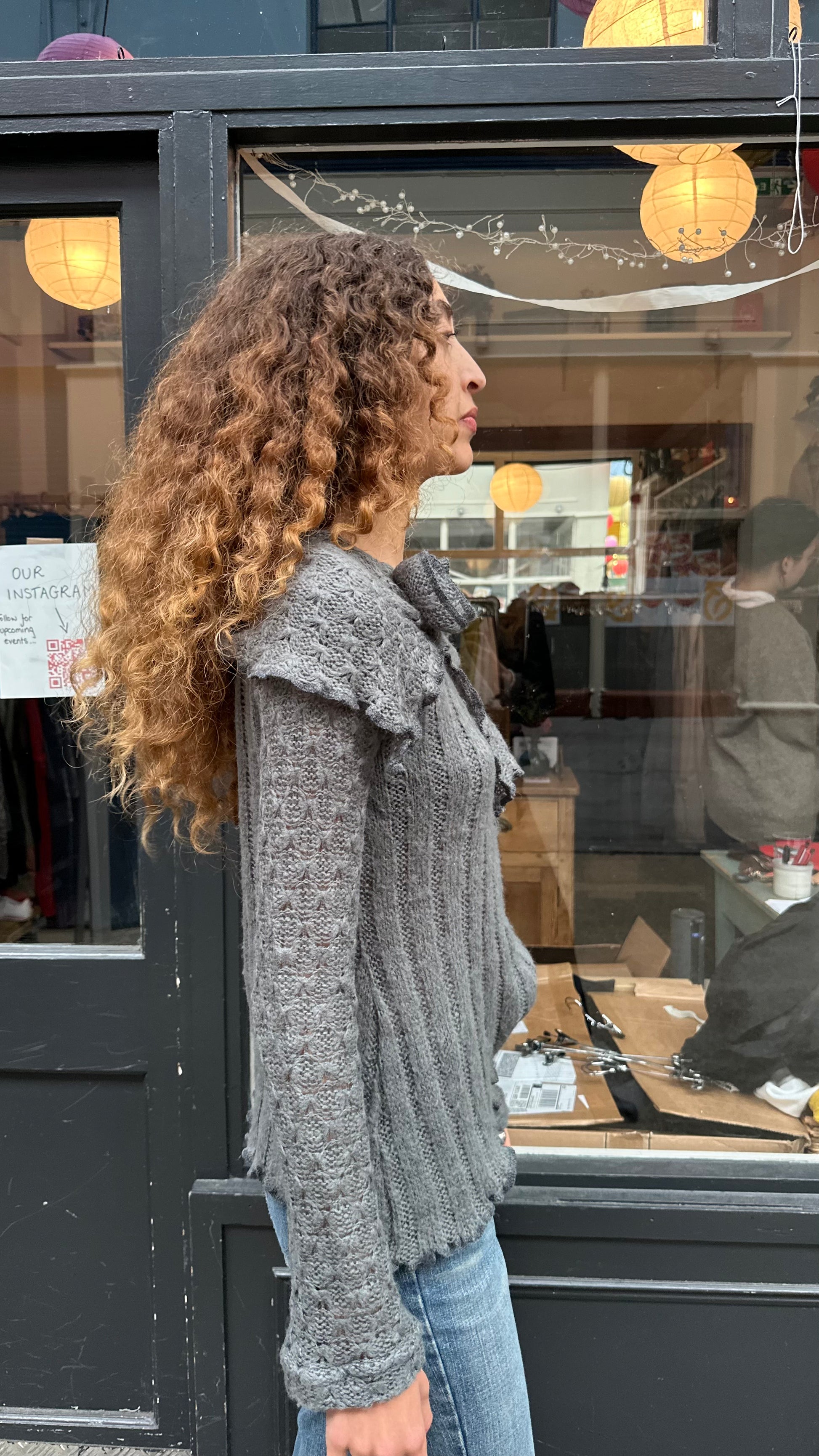 Zone bleue made in France off shoulder jumper with a rosette on the shoulder